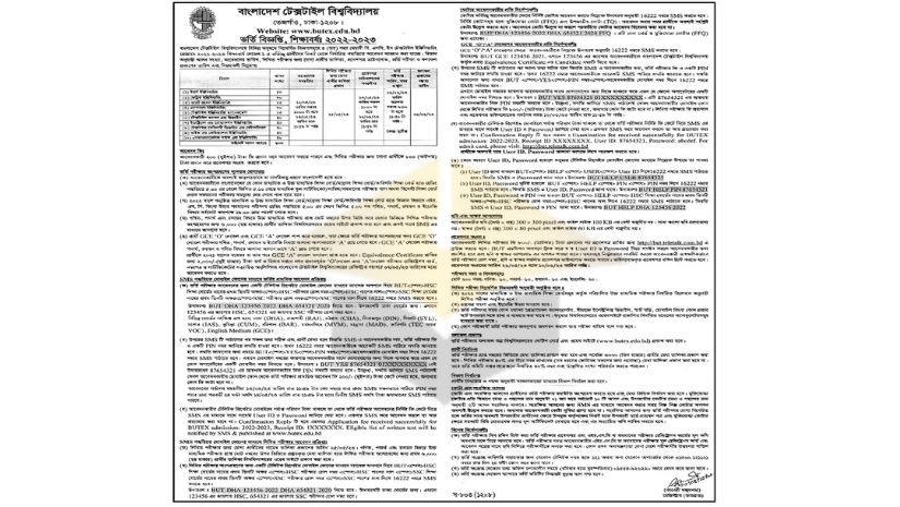 বুটেক্স এর ভর্তি বিজ্ঞপ্তি প্রকাশ