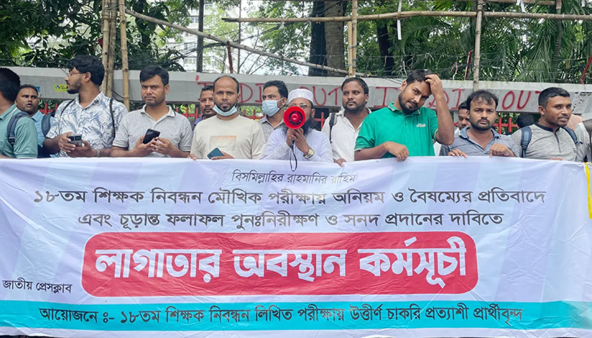 প্রেসক্লাবের সামনে ১৮তম নিবন্ধনে বঞ্চিতদের অবস্থান