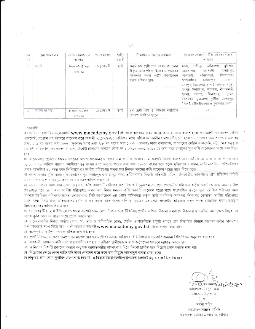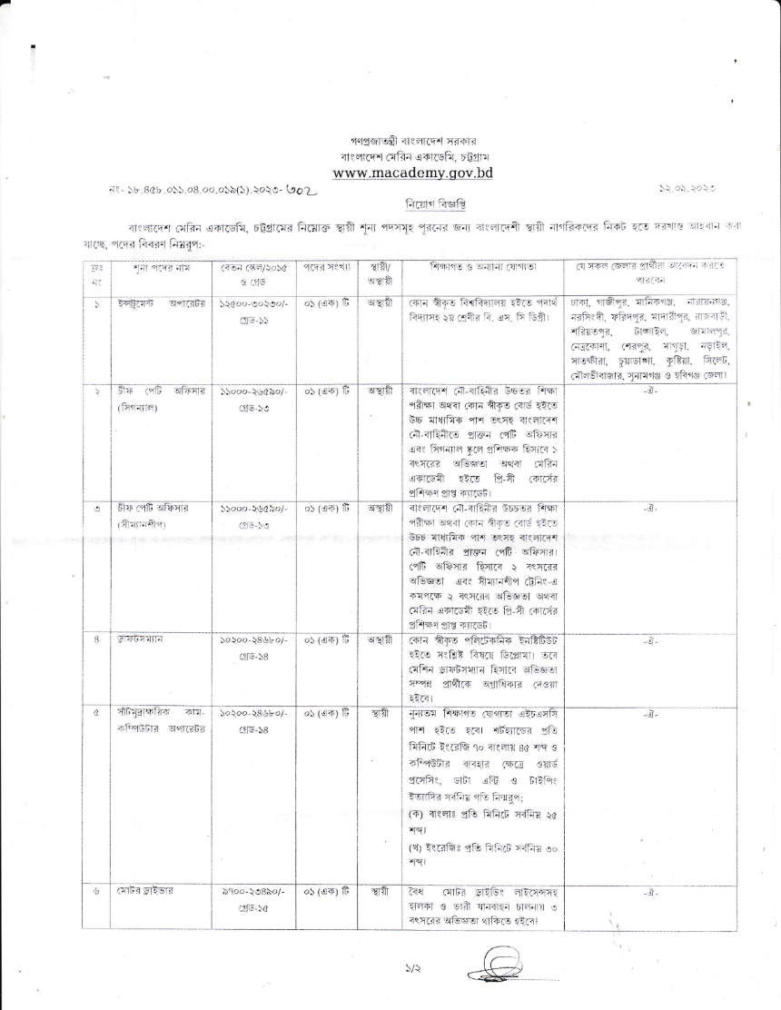 বাংলাদেশ মেরিন একাডেমিতে ৮ পদে চাকরির সুযোগ,আবেদন শেষ ৫ অক্টোবর